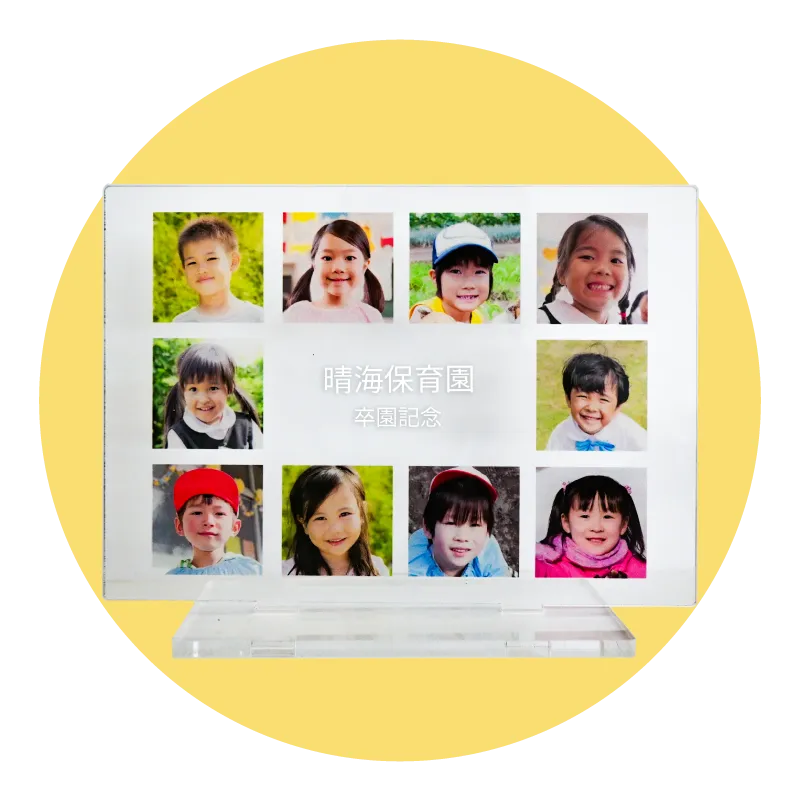 また、一部商品では写真を入れるだけで作れるイラストフレーム付きのデザインなどもご用意しております。